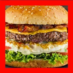 Pão macio recheado com dois hambúrgueres artesanais, lombo suculento, frango, bacon crocante, ovo, presunto, mussarela, cheddar, alface, tomate e milho.